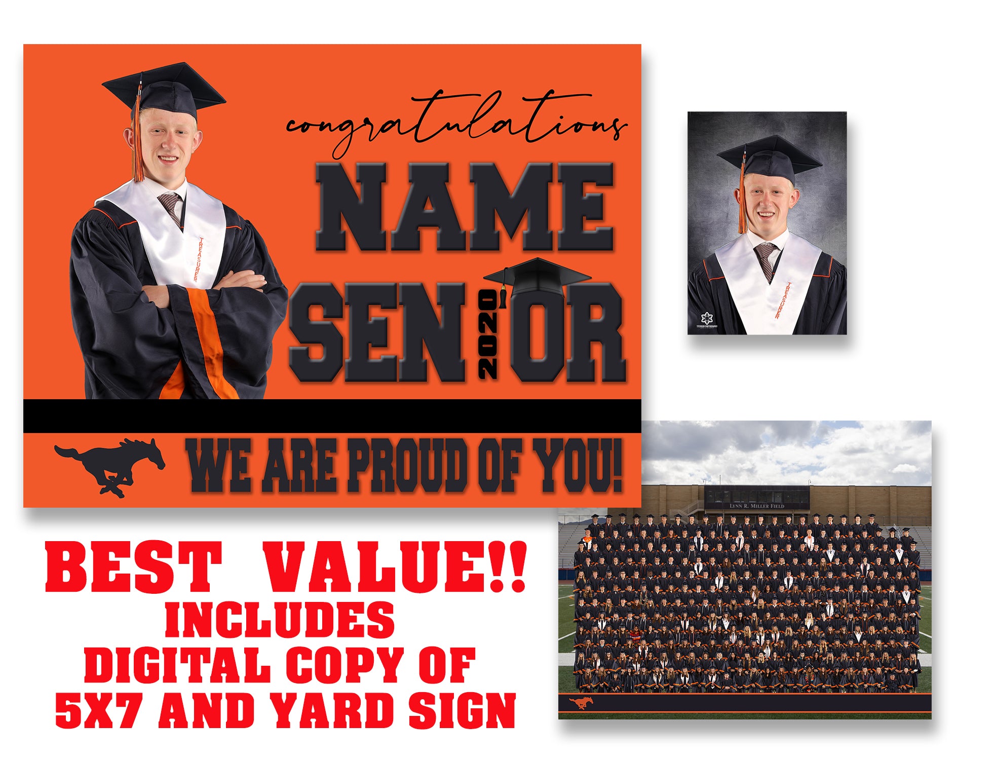 5x7 Cap and gown individual print and emailed digital copy